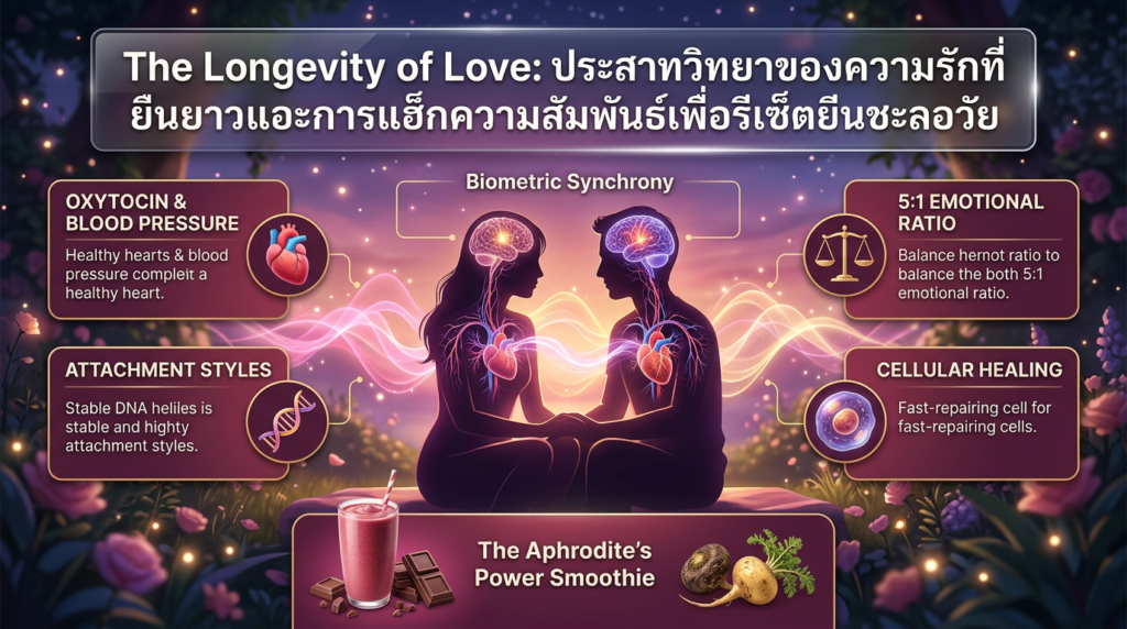 เมื่อพูดถึงความรัก มนุษย์เรามักนิยามมันผ่านบทกวี ภาพยนตร์โรแมนติก หรือเรื่องของโชคชะตาที่จับต้องไม่ได้ แต่เมื่อมองผ่านเลนส์ของ Biohacking และ Longevity Science (วิทยาศาสตร์การชะลอวัย) ความรักไม่ใช่แค่ความรู้สึกทางใจ แต่มันคือ “กระบวนการทางชีวภาพและเคมี” ที่ซับซ้อนและทรงพลังที่สุดอย่างหนึ่งที่ธรรมชาติมอบให้มนุษย์