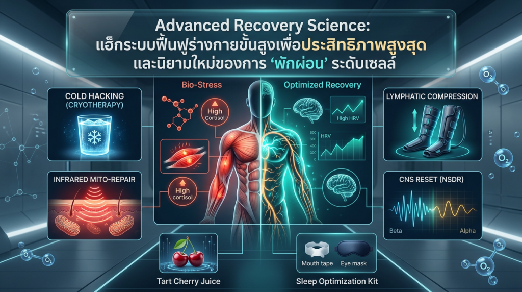 บทความนี้จะพาคุณก้าวข้ามคำว่า “การพักผ่อน” แบบพื้นๆ ไปสู่ Advanced Recovery Science (วิทยาศาสตร์การฟื้นฟูร่างกายขั้นสูง) ซึ่งเป็นการจัดการระบบประสาทส่วนกลาง (CNS) การกำจัดของเสียระดับโมเลกุล และการใช้เทคโนโลยีล้ำสมัยเพื่อ “รีเซ็ต” ร่างกายให้กลับมาพร้อมรบในเวลาที่สั้นที่สุด